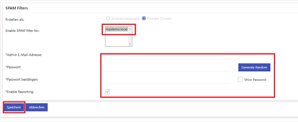Sollte Ihre Domain hier noch nicht angelegt sein, klicken Sie den Button "Add Spam Filter Domain/Alias(es)“.