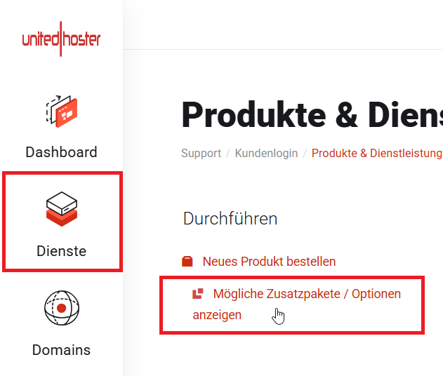 Den Service Dongle Hosting können Sie über Ihren Account im Kundenportal hinzubuchen.