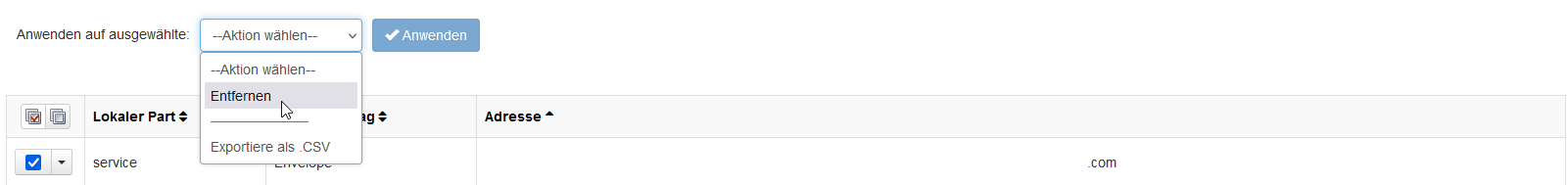 Markieren Sie den entsprechenden Eintrag und klicken Sie auf "Aktion wählen".