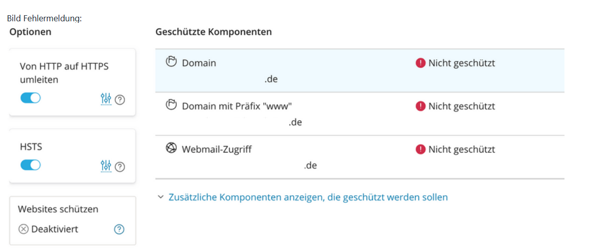Ansicht der Fehlermeldung: