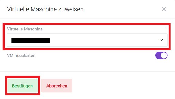 - Wählen Sie nun den virtuellen Server, dem Sie ebenfalls das interne Netzwerk zuweisen wollen und klicken auf den Button „Bestätigen“